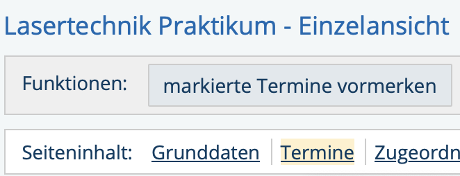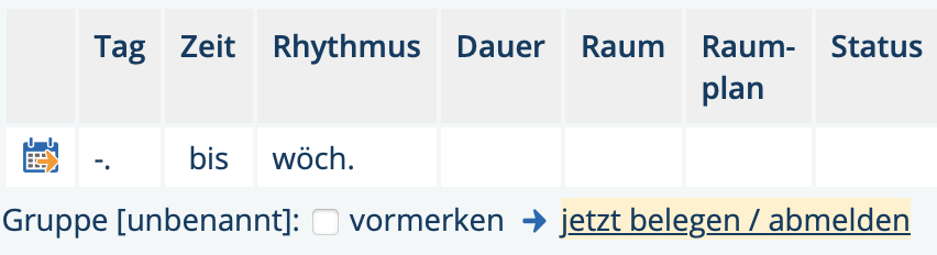 - Wählen Sie "jetzt belegen / abmelden" (siehe Bildschirmfoto, gelb markiert)